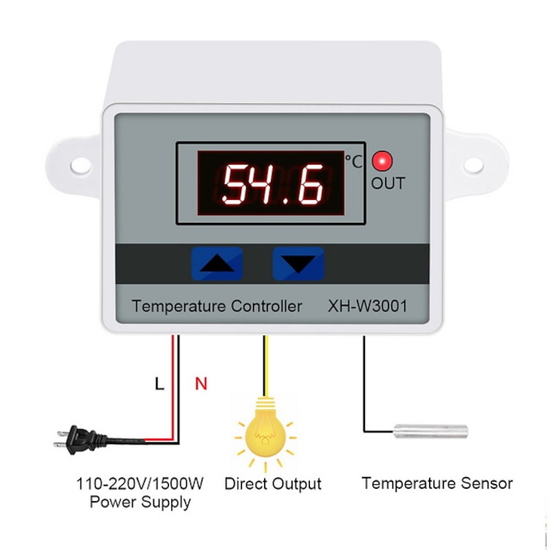 XH-W3001 Digital LED Temperature Controller Module Digital Thermostat Switch with Waterproof Probe Programmable Heating Cooling Electronic Thermostat Range from -50? to 110? (12V 10A 120W) 5