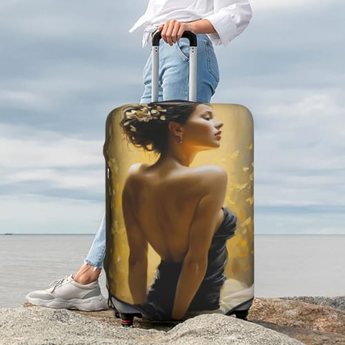 Beautiful Woman Gold Color Elastic Travel Luggage Covers Dustproof Scratch-Resistant Suitcase Protector Fit 22-24 Inch 5