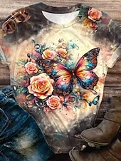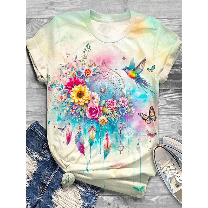 More information about Women's T Shirt Ombre Graphic Animal Vintage Stylish Classic Short Sleeve Crew Neck Regular Tops Daily Weekend Print Pink Blue Brown Green Khaki Summer Spring