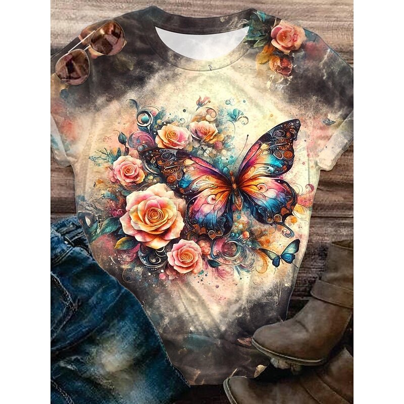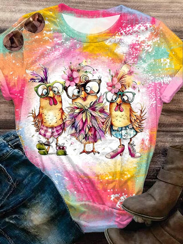 Women's T Shirt Ombre Graphic Animal Vintage Stylish Classic Short Sleeve Crew Neck Regular Tops Daily Weekend Print Pink Blue Brown Green Khaki Summer Spring 13