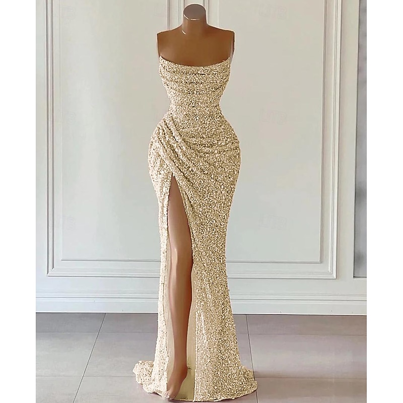 More information about Beach Wedding Sheath Sequin Prom Dresses Elegant Dress Formal Prom Floor Length Sleeveless Strapless Masquerade Dress
