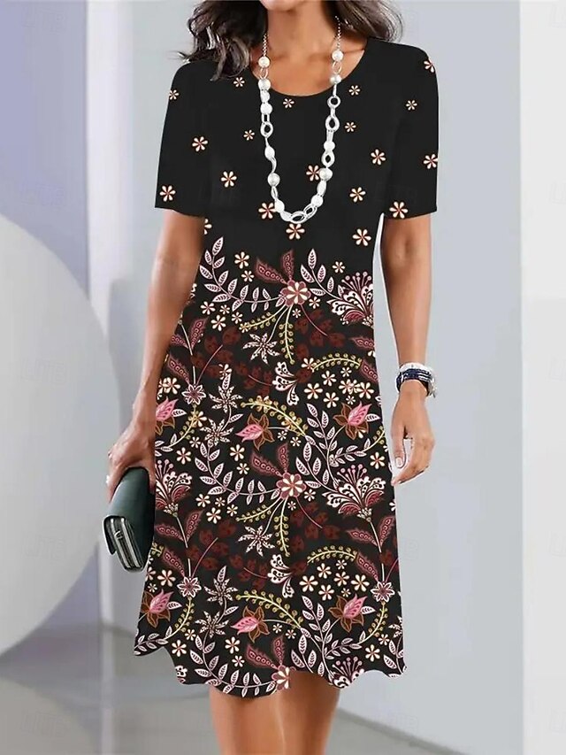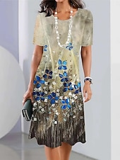 More information about Women's Floral Print Crew Neck Midi Dress Formal Party Vacation Short Sleeve Summer