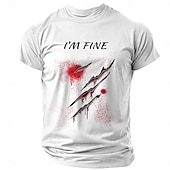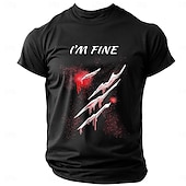 HOT ! Men's Short Sleeve Graphic T-Shirt with 'I'M FINE' Bloody Claw Marks Print, Dark Humor Ironic Lifestyle Tee