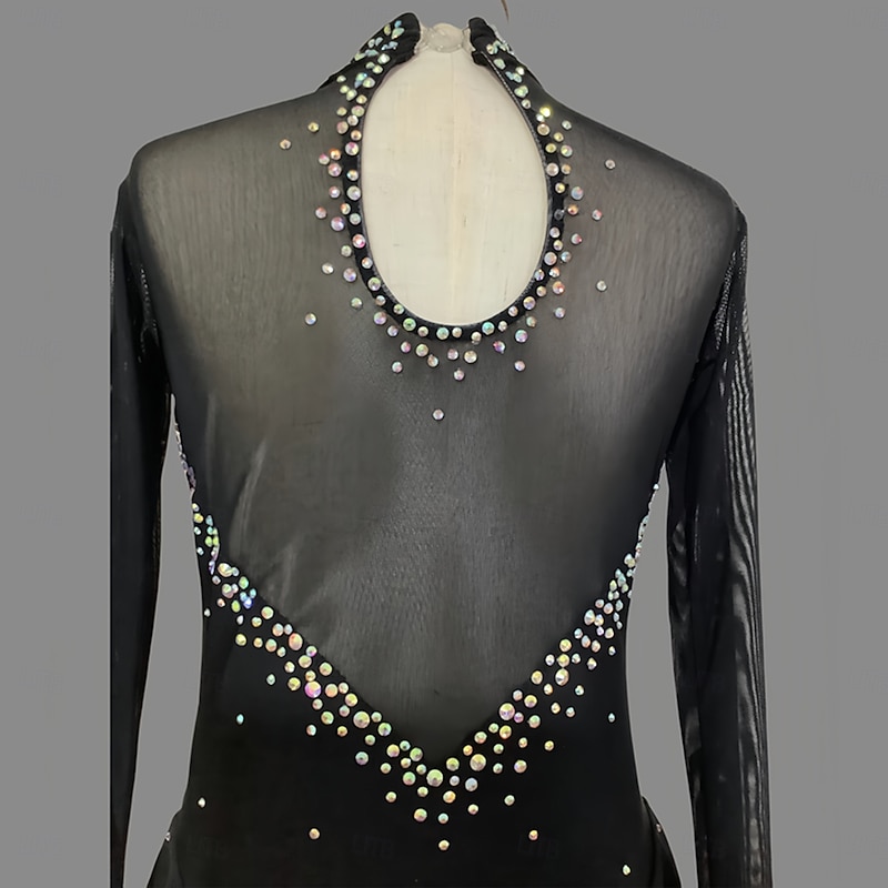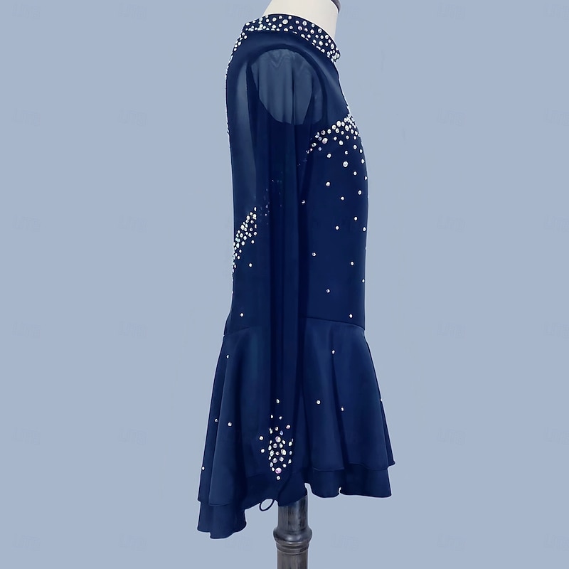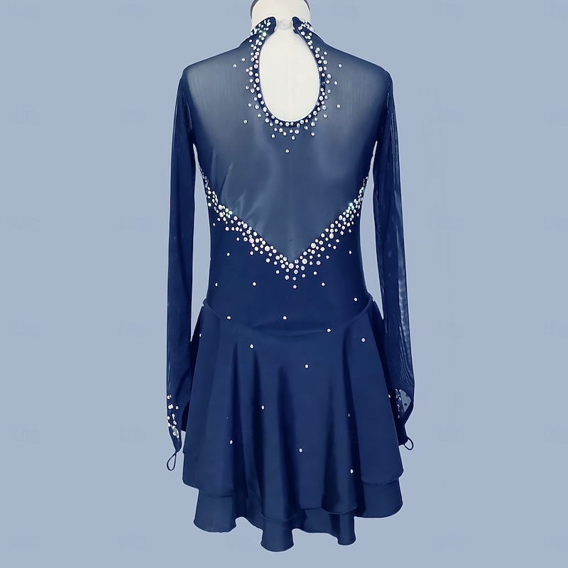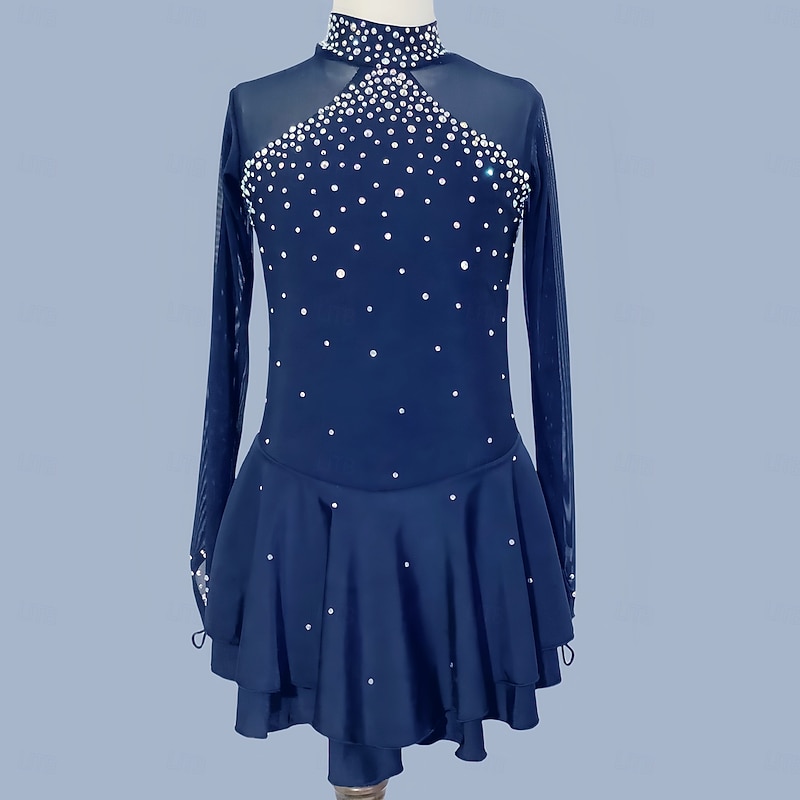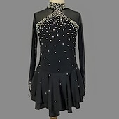 More information about Figure Skating Dress Women's Girls' Ice Skating Dress Black Dark Navy Thumbhole Dyeing Mesh Spandex Stretchy Training Practice Professional Skating Wear Thermal Warm Classic Crystal / Rhinestone