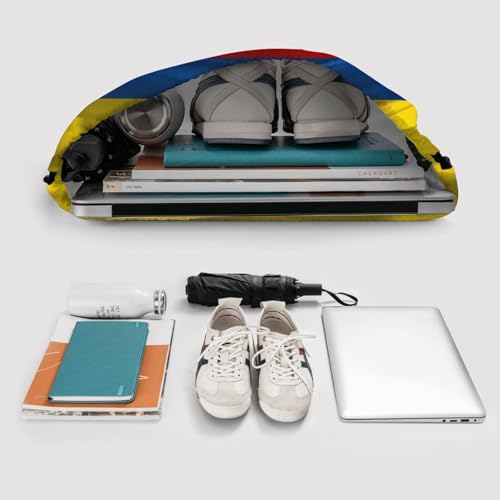 Flag of Colombia Drawstring Backpack, Large Size Storage Draw String Bag, Printed Sports Cinch Bags for Gym 5