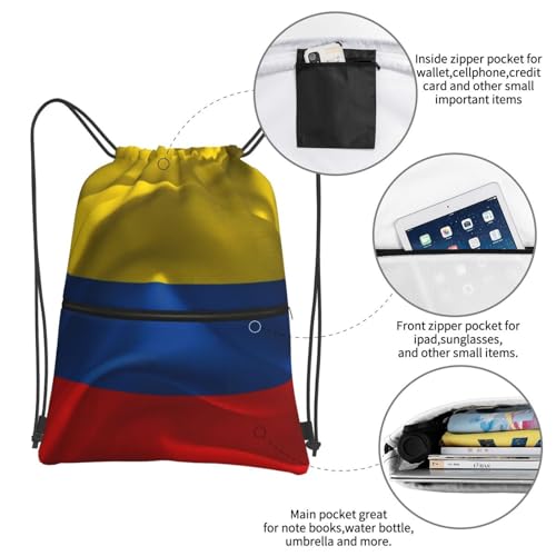 Flag of Colombia Drawstring Backpack, Large Size Storage Draw String Bag, Printed Sports Cinch Bags for Gym 4