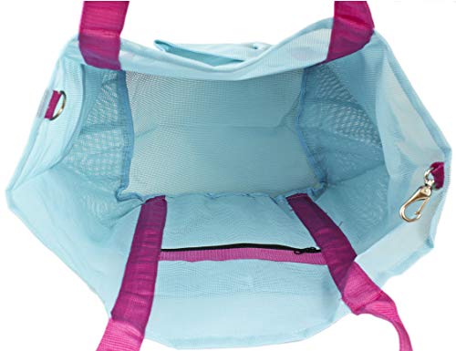Zoie + Chloe Beach Mesh Tote Bag - 8 Pockets, Zipper, Key Hook & Carabiner 7