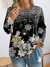 More information about Women's Plus Size Tops T shirt Snowflake Print Long Sleeve Crew Neck Casual Daily Fall Winter Black
