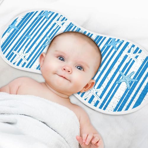 Blue White Starfish Cotton Baby Burp Cloth Breathable spit up Rags for Unisex Set of 2, 22x11in 5