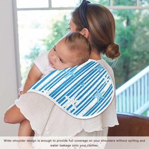 Blue White Starfish Cotton Baby Burp Cloth Breathable spit up Rags for Unisex Set of 2, 22x11in 4
