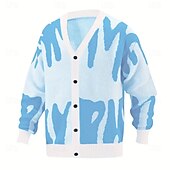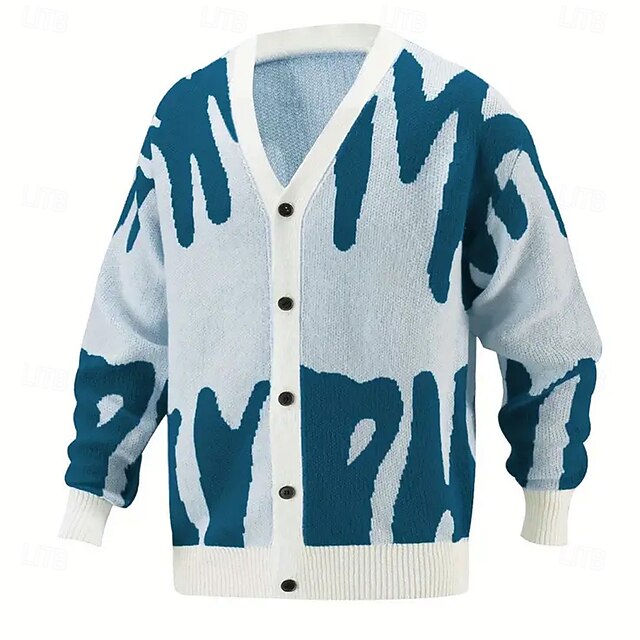 More information about Men's Color Block Cardigan Sweater V Neck Casual School Vacation Daily 3D Print Keep Warm Long Sleeve Spring Fall Winter Black Blue Sky Blue