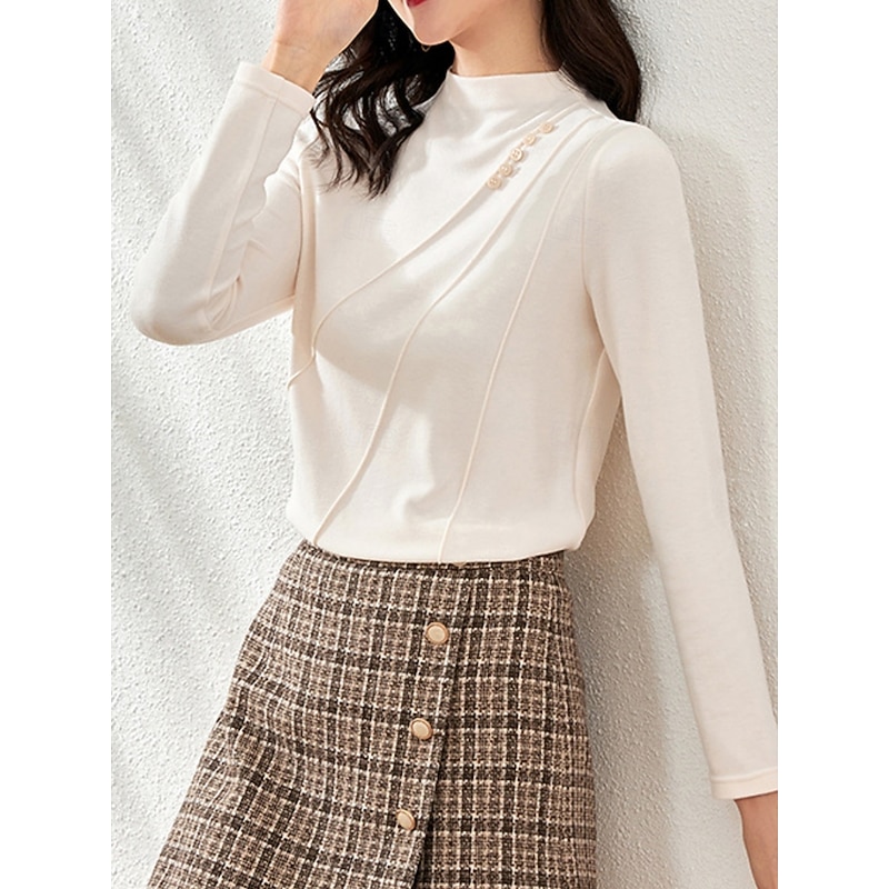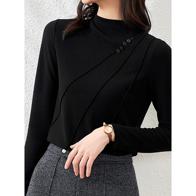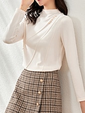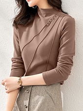 More information about Women's Blouse Solid Color Elegant Stylish Basic Long Sleeve High Neck Regular Tops Daily Black White Brown Green Spring Fall Winter