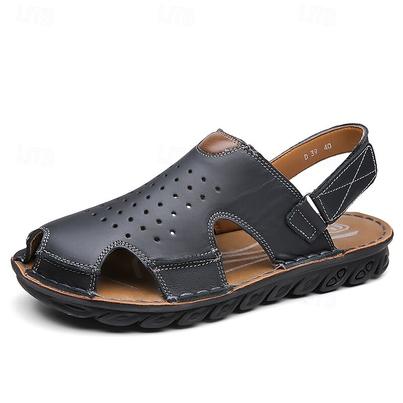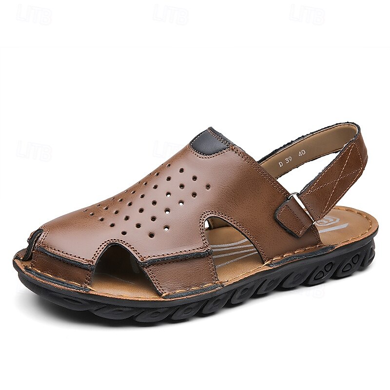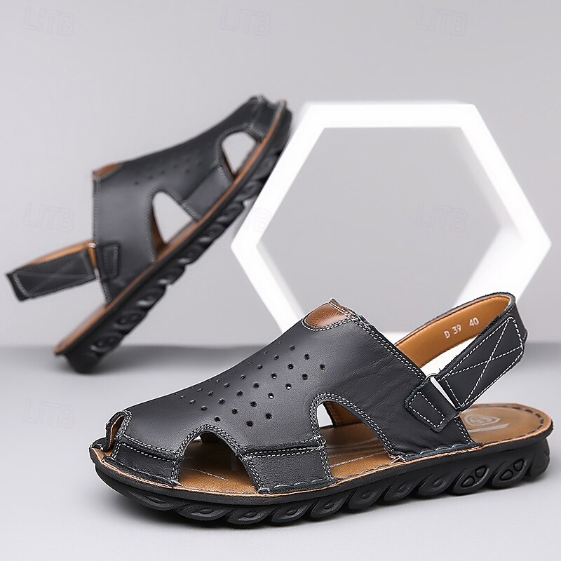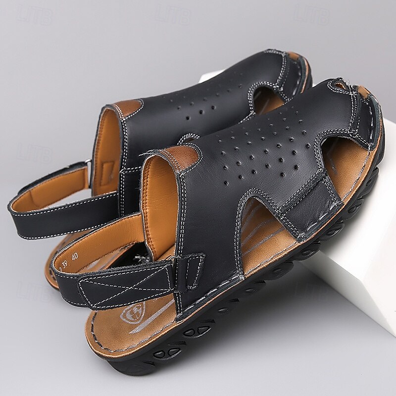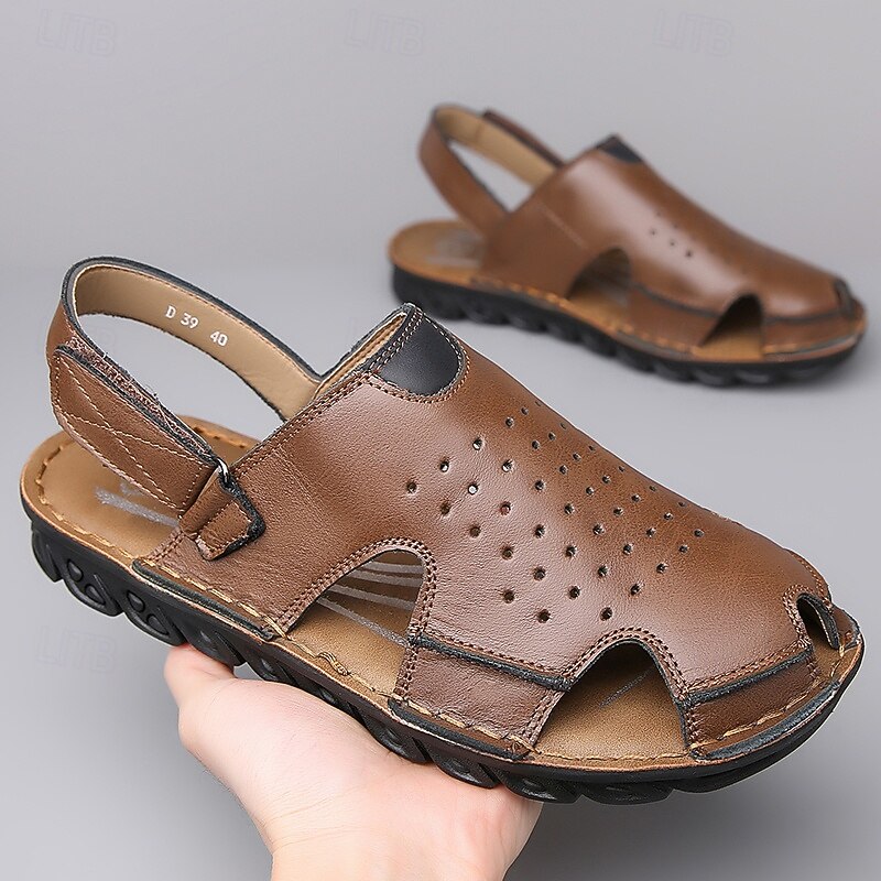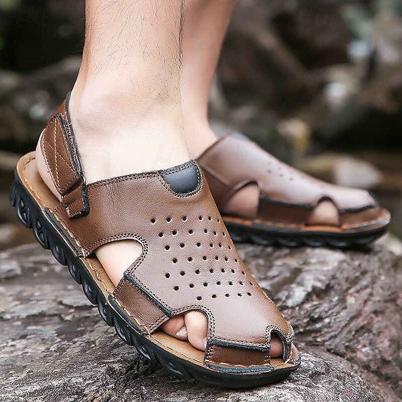 HOT ! Men's Outdoor Sandals with Faux Leather Perforated Design and Hook and Loop Strap Durable Sole for Hiking Beach and Daily Activities