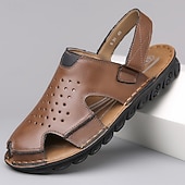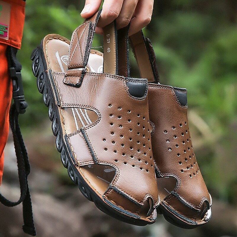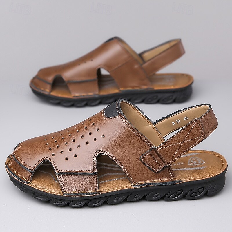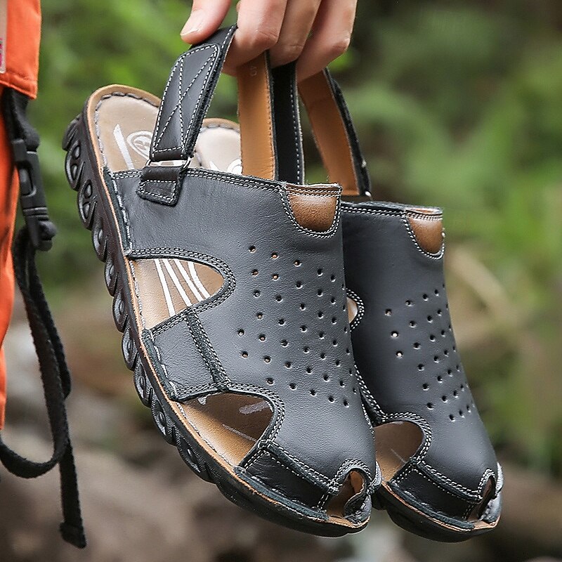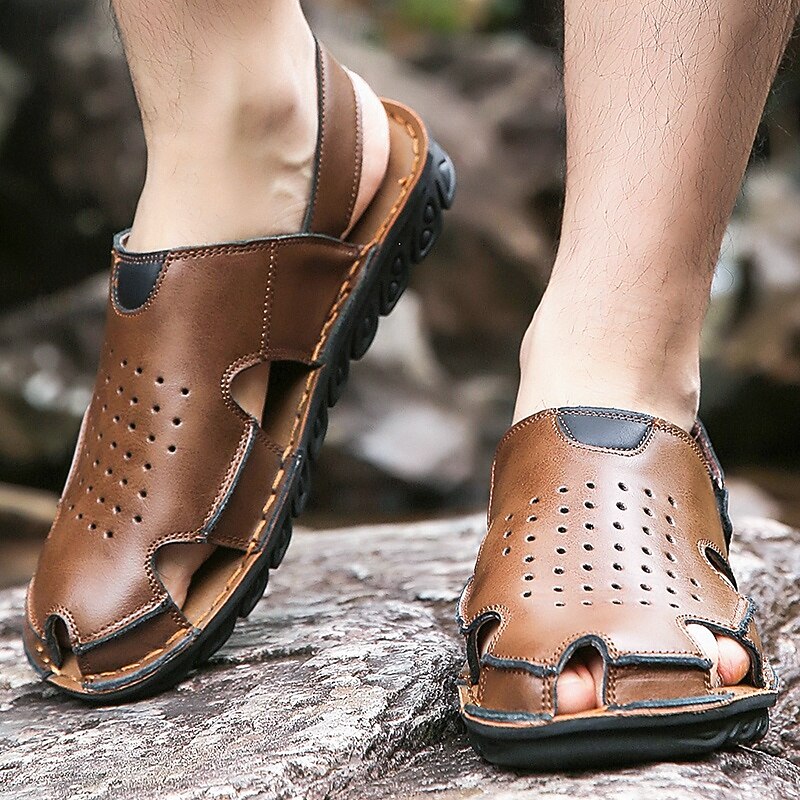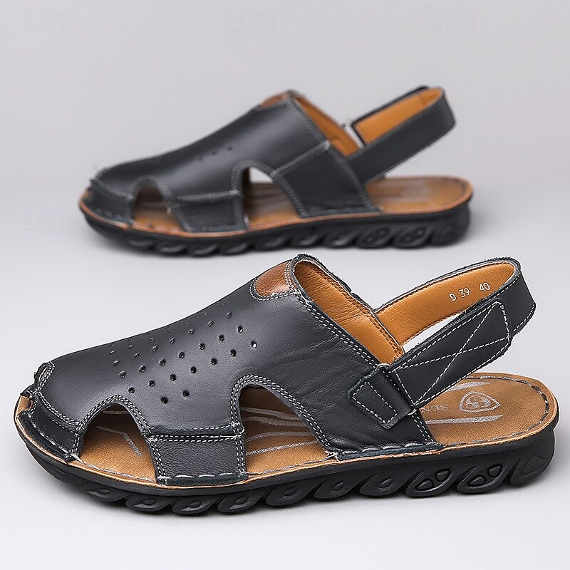 HOT ! Men's Outdoor Sandals with Faux Leather Perforated Design and Hook and Loop Strap Durable Sole for Hiking Beach and Daily Activities