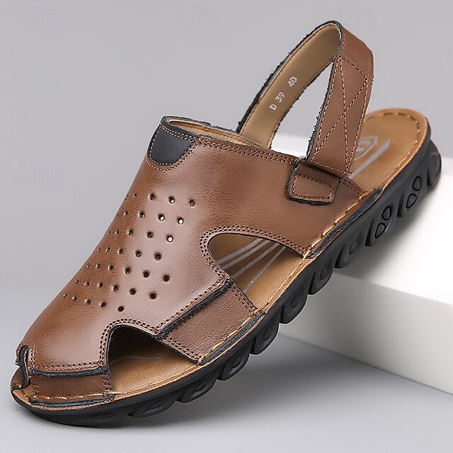 Men's Outdoor Sandals with Faux Leather Perforated Design and Hook and Loop Strap Durable Sole for Hiking Beach and Daily Activities 30