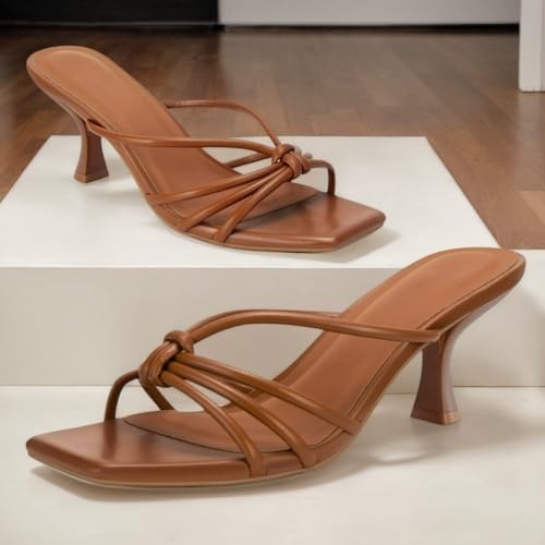 More information about Women's Minimalist Tied Strappy Kitten Heel Sandals, Square Open Toe Slip-on Low Heel Mules, Elegant Summer Dress Shoes for Party, Evening, and Casual Wear, Multicolor
