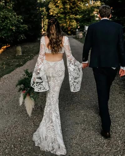 More information about Long Sleeve Wedding Dress Vintage Lace Mermaid Wedding Gowns Beach Boho Bridal Dresses for Women Bride