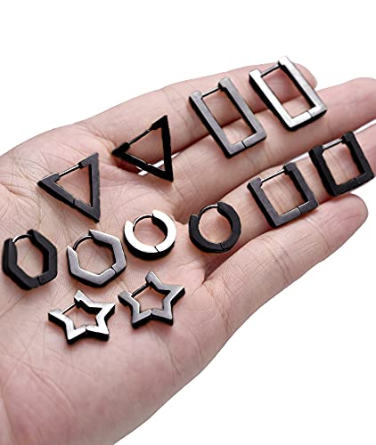 6 Pairs Minimalist Hoop Earrings Stainless Steel Small Dainty Geometric Square Triangle Star Rectangle Huggies Earrings for Women Ladies Gold Silver Black Tone 5