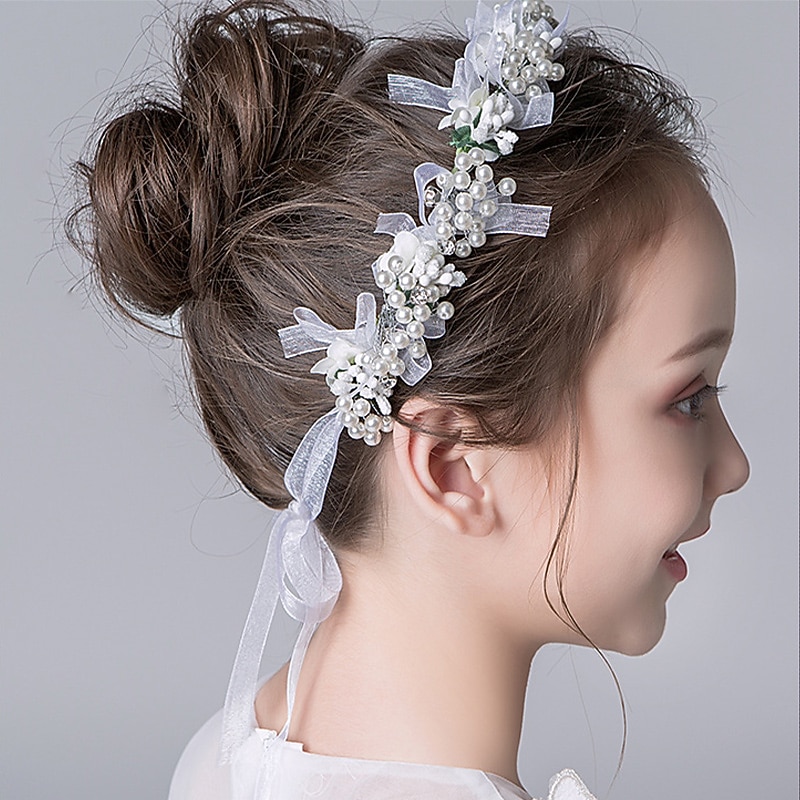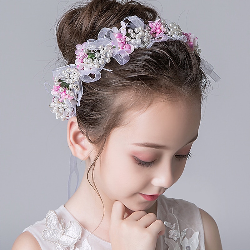 Cute Princess Wedding Headpiece Flower Wedding Hair Accessories Pearl Rhinestone Headband Bridal Wedding Tiaras for Flower Girl and Women 1
