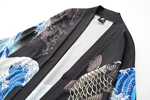 More information about Men Japanese Vintage Short Sleeve Cardigan The Great Wave Off Kanagawa Beach Painting Harajuku Kimono Casual Alt Tops