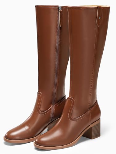 Coutgo Womens Knee High Boots Low Chunky Heel Round Toe Tall Boots Side Zipper Fall Dress Shoes 4