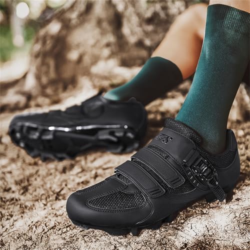 JiuQing Mountain Bike Shoes Men Compatible with 2-Bolts SPD Cleats Outdoor MTB Cycling Shoes 7