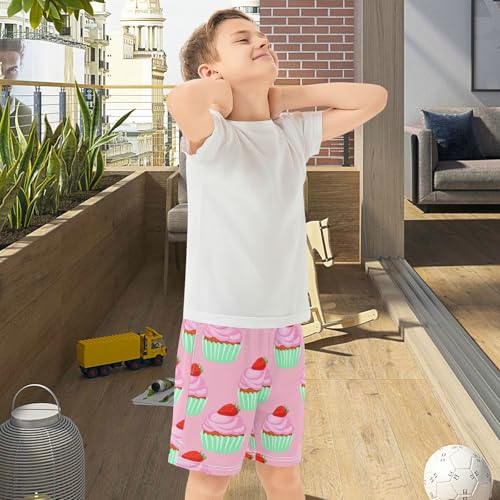 J JOYSAY Strawberry Cupcake Sweet Boys Athletic Shorts Kids Youth Casual Shotrs with Elastic Waistband Pockets 6