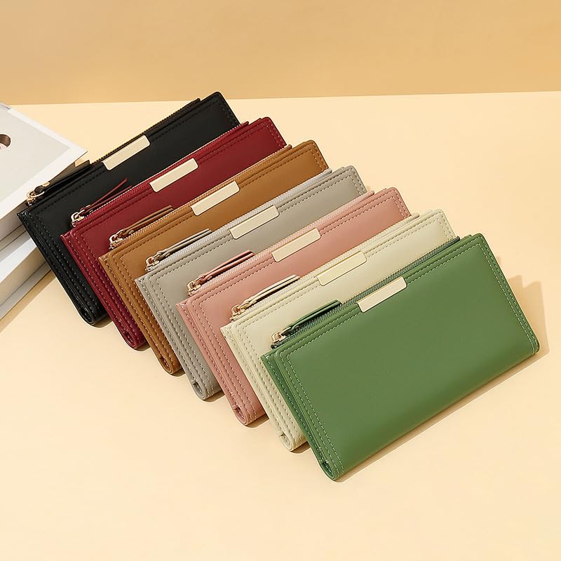 Leather Long Bifold Wallets Women's Wallet Double Fold with Zipper Multifunctional Leather Wallet, Large Capacity Card Holder, Hand-Held Wallet,Leather Bifold Wallets with Zipper Coin Pocket (Black) 1