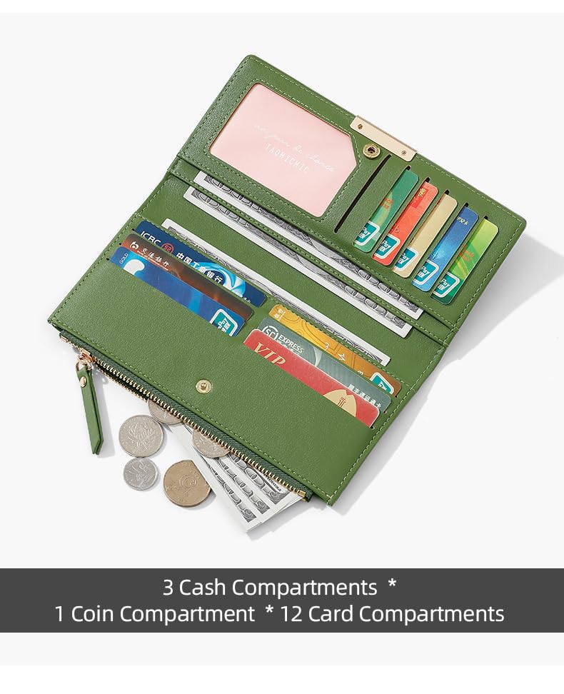 More information about Leather Long Bifold Wallets Women's Wallet Double Fold with Zipper Multifunctional Leather Wallet, Large Capacity Card Holder, Hand-Held Wallet,Leather Bifold Wallets with Zipper Coin Pocket (Black)