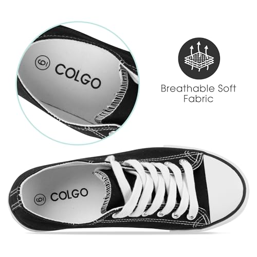 Colgo Women's Canvas Shoes, Lace-Up Low-Top Comfortable Breathable Sneakers for Women, Non-Slip Fashion Flats 6