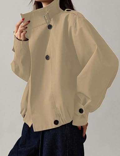 • Features: Womens cropped trench coats featured in double breasted, long sleeve, stand collar, crop length, oversized silhouette, elastic hemline, short trench coats for women