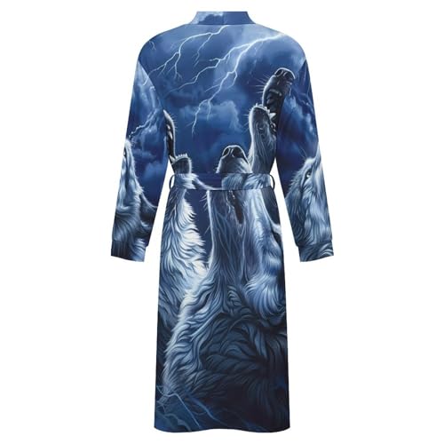 Wolves Howl at The Moon Soft Robe Long Sleeve Bathrobes V Neck Sleepwear Spa Robes with Belt Men Woman 3