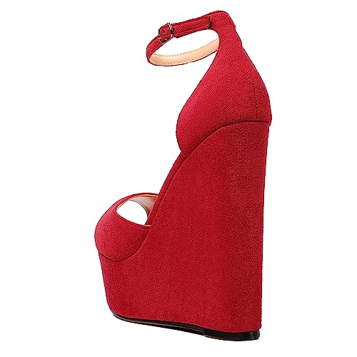 ROSERWISH Womens Sexy Peep Toe Night Club Ankle Strap Suede Buckle Platform Fashion Wedge High Heel Pumps Shoes 6 Inch 5