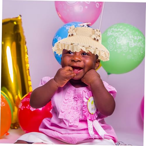 Boy Girl Sun Hat for Girls Wide Brim Uv Blocking Hat Bunny Ears Lace Trim Summer Accessory for Toddlers Beige 7