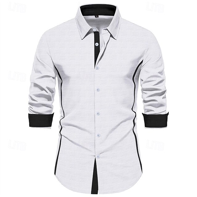 More information about Men's Shirt Summer Shirt Casual Shirt Beach Shirt Button Up Shirt Black White Pink Sky Blue Beige Long Sleeve Color Block Lapel Vacation Hawaiian Jacquard Clothing Apparel Polyester Fashion Casual