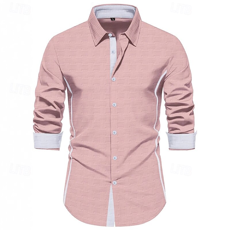 Men's Shirt Summer Shirt Casual Shirt Beach Shirt Button Up Shirt Black White Pink Sky Blue Beige Long Sleeve Color Block Lapel Vacation Hawaiian Jacquard Clothing Apparel Polyester Fashion Casual 1