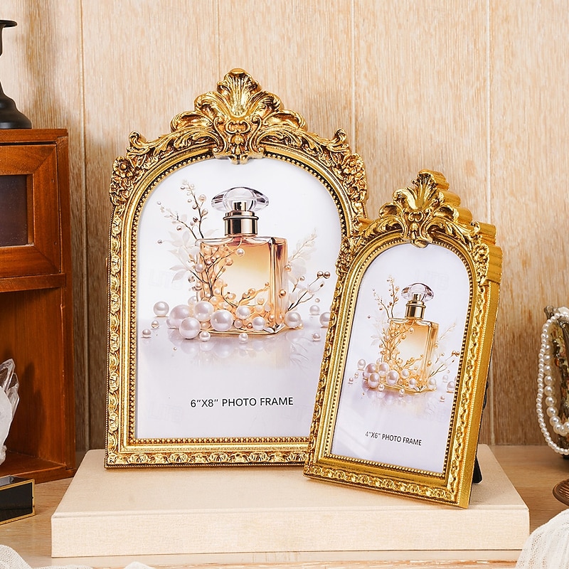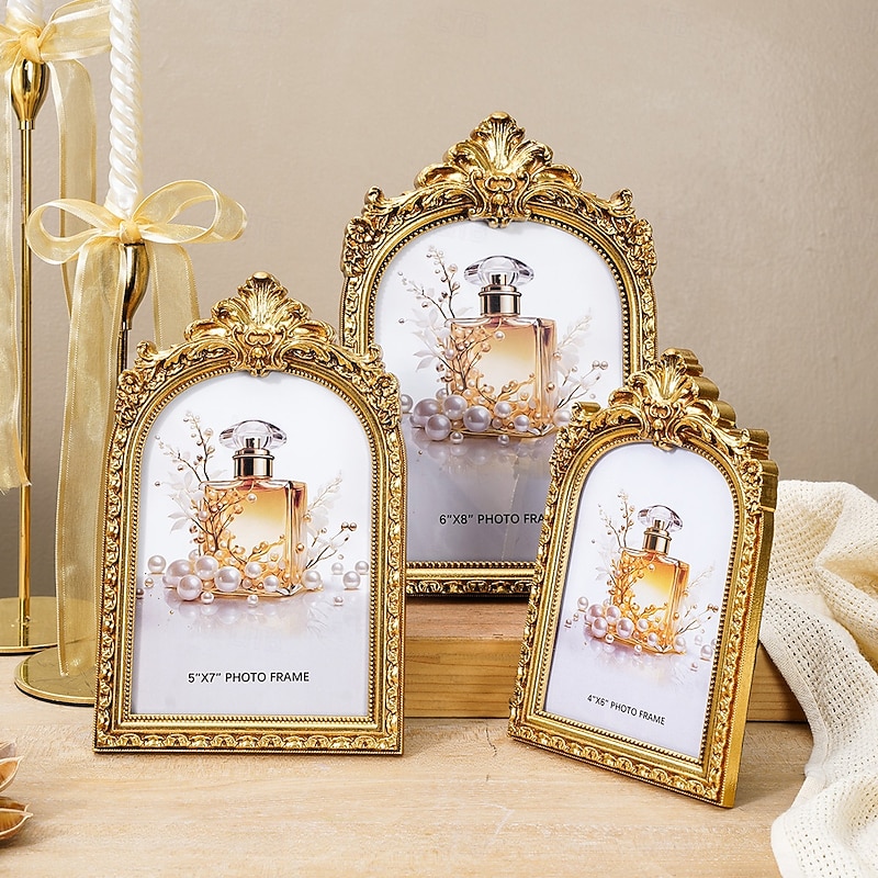 HOT ! Vintage Gold/Silver Arch Lace Decorative Photo Frame, European-Style Antique Tabletop Home Décor, Perfect for Photo Display, Home Decoration, and Photography Props