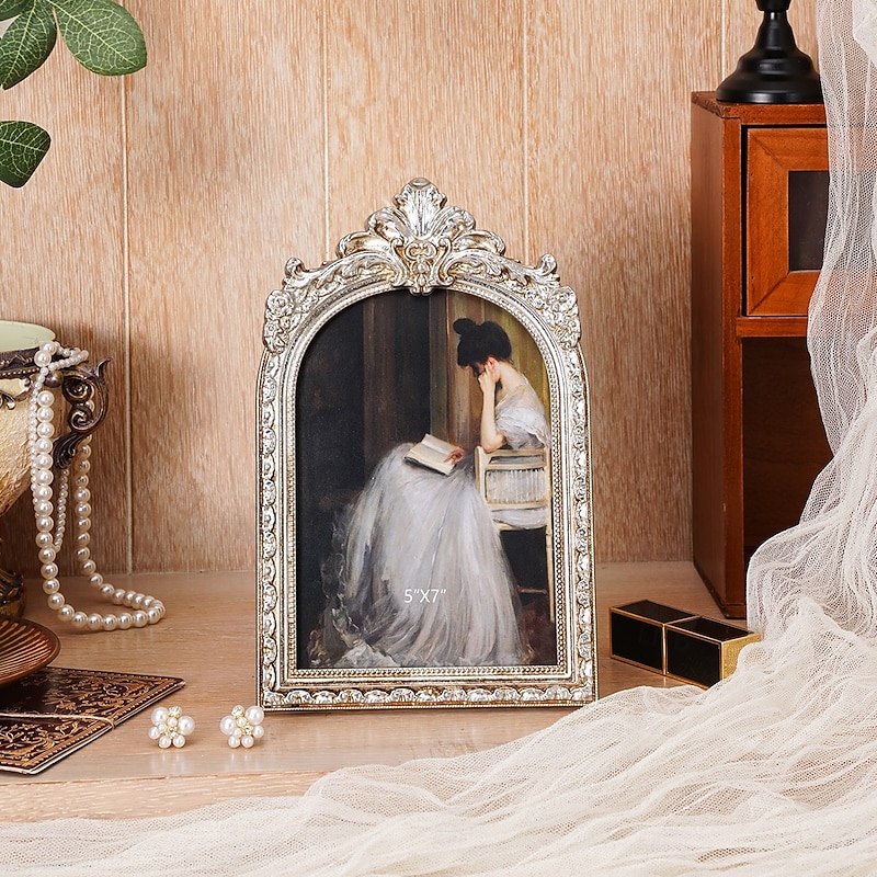 $10.99 - Vintage Gold Silver Lace Photo Frame for Home Décor 2025. Shop for cheap Sculptures online? Buy at lightinthebox.com on sale today!