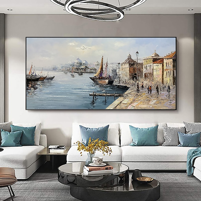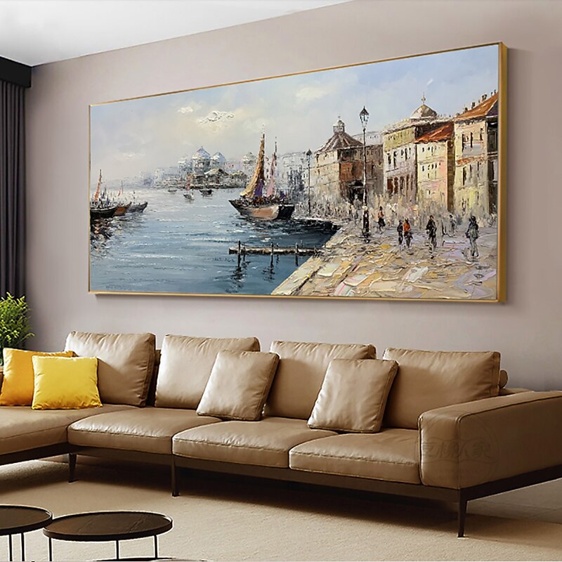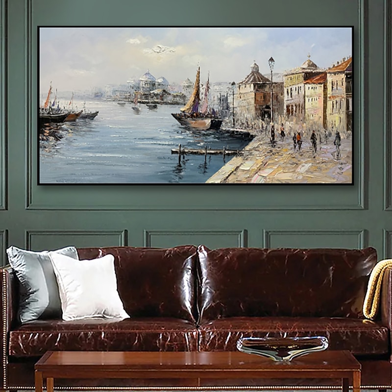 More information about Handmade Oil Painting canvas Wall Art Decoration Retro russian Buildings Landscape Street View Seascape for Home Decor Rolled Frameless Unstretched Painting