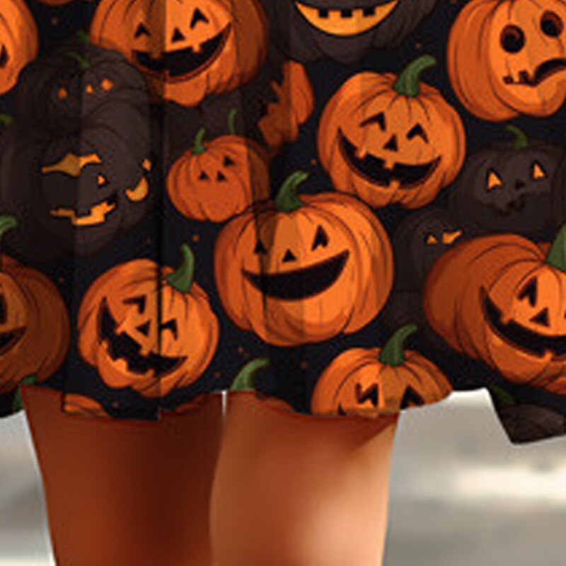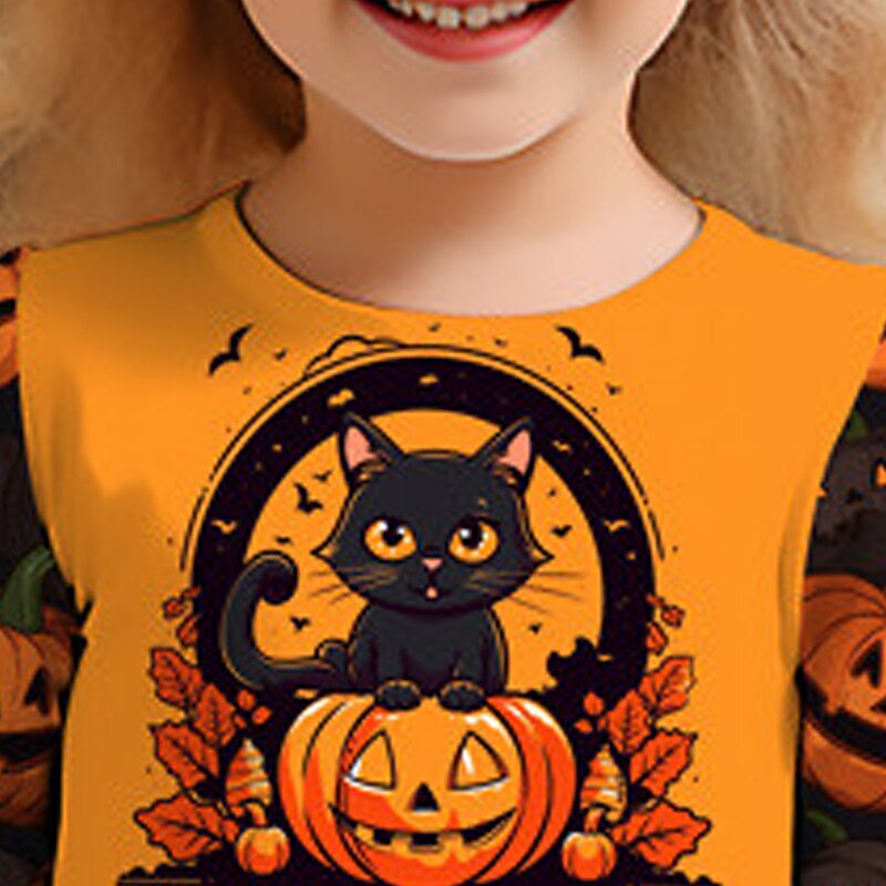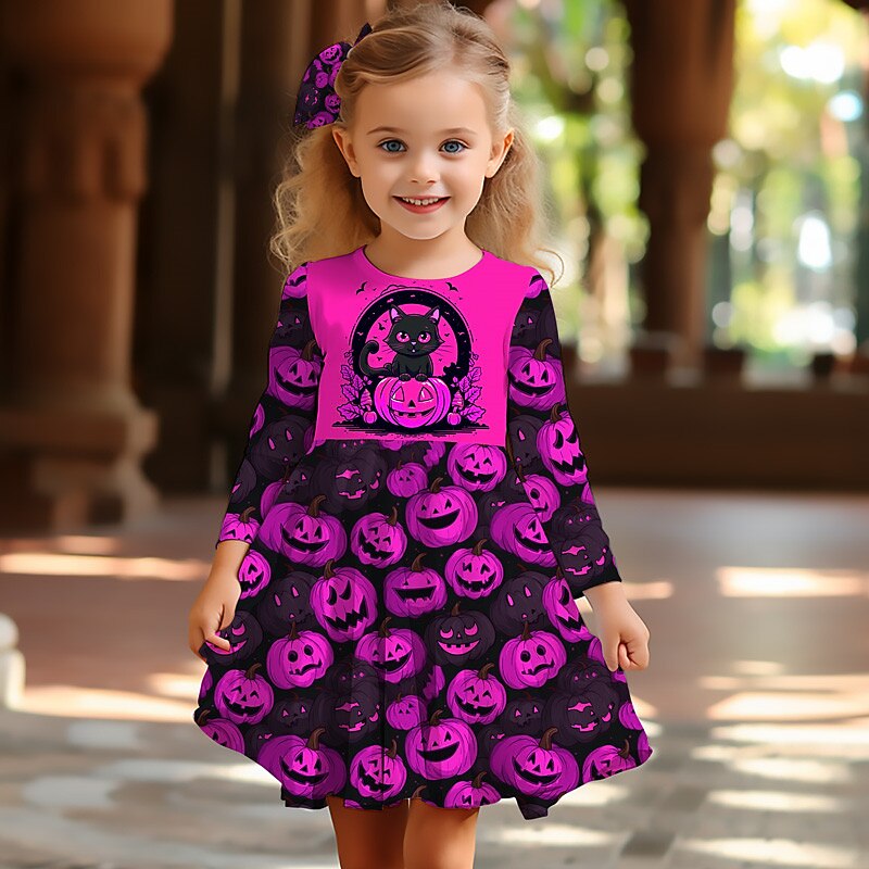 More information about Halloween Girls' 3D Graphic Pumpkin Dress Long Sleeve 3D Print Summer Fall Halloween Holiday Vacation Cute Casual Beautiful Kids 3-12 Years Casual Dress A Line Dress Above Knee Polyester Regular Fit