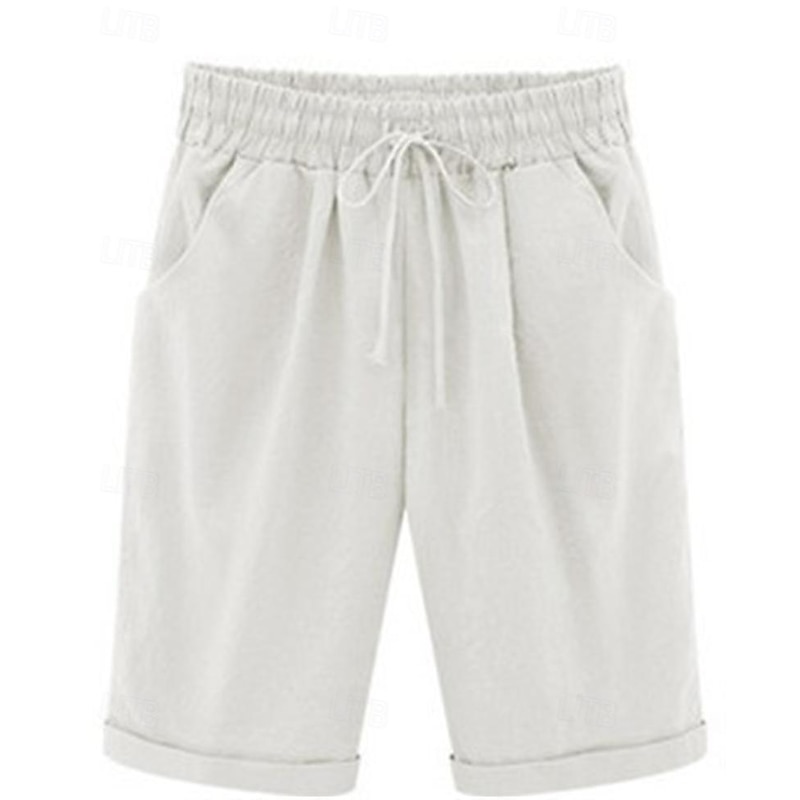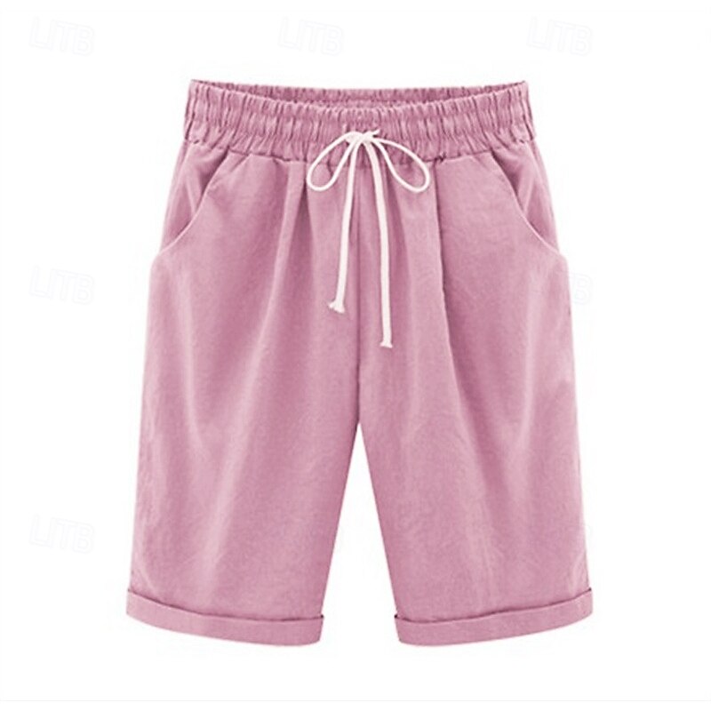 More information about Women's Linen-Inspired Shorts Shorts Casual Daily Short Plain Drawstring Side Pockets Breathability snug Micro-elastic Going out Weekend White Yellow Pink Summer Regular Fit