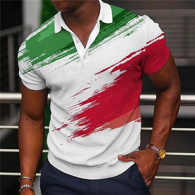 Men's Veterans Patriotic Polo Shirts Golf Shirt Short Sleeve Polo Shirts Collared Shirts Casual Streetwear Vacation Wear Party Outfits 3D Print Buttons White Yellow Red 8