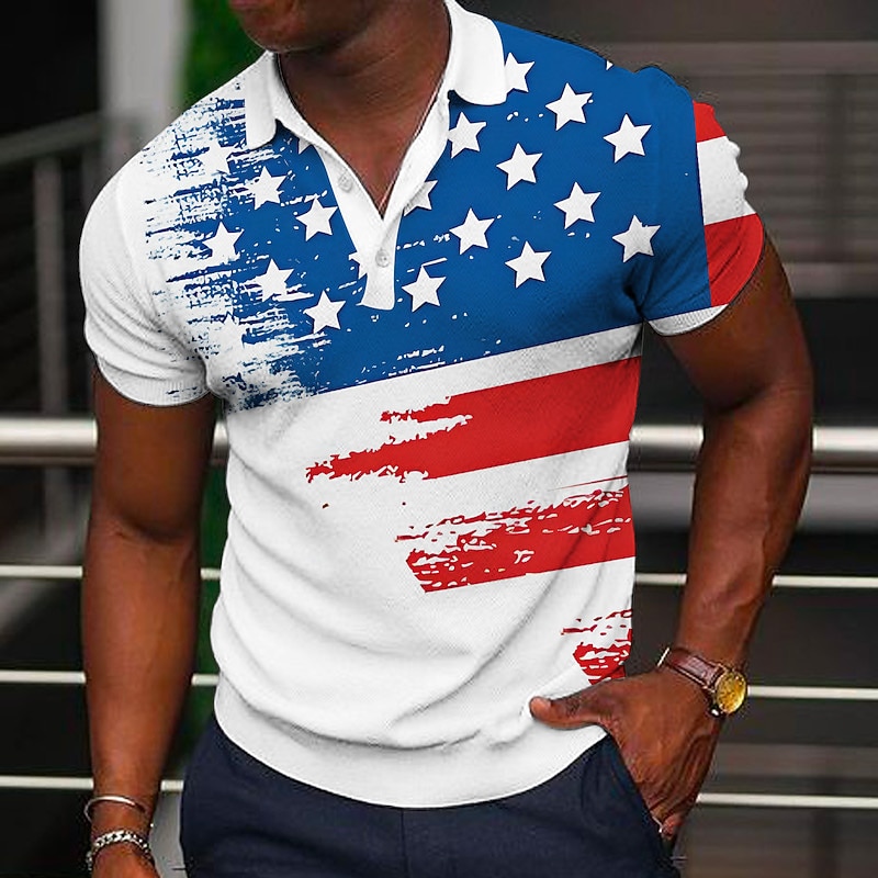 More information about Men's Veterans Patriotic Polo Shirts Golf Shirt Short Sleeve Polo Shirts Collared Shirts Casual Streetwear Vacation Wear Party Outfits 3D Print Buttons White Yellow Red