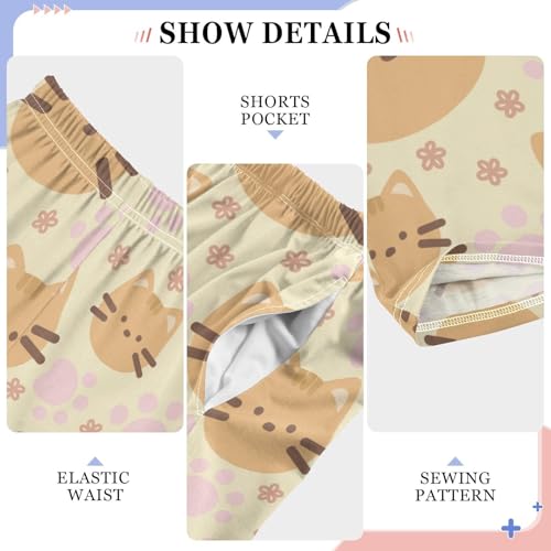 Boys' Pants Cute Cat Pink Flower Long Bottoms Jogger Pants Elastic Waist Trousers with Pockets S-XL 7
