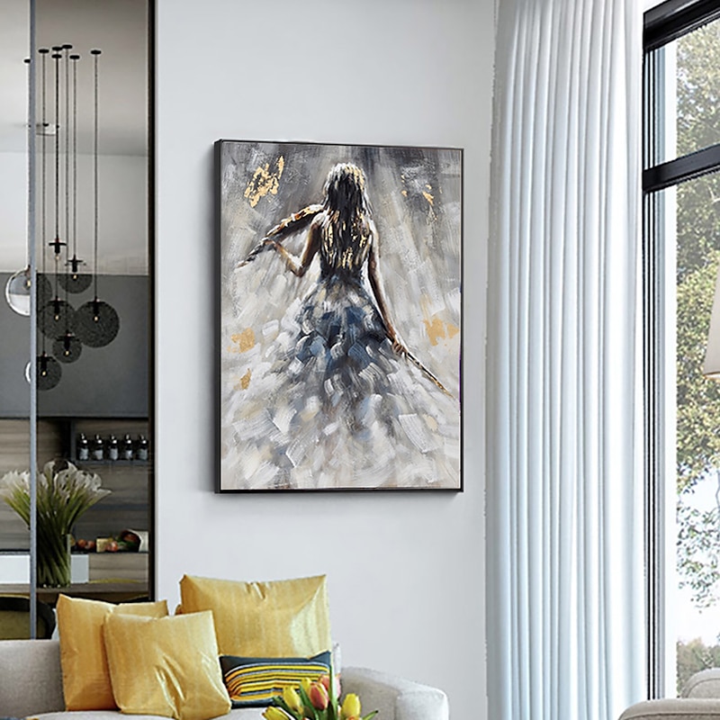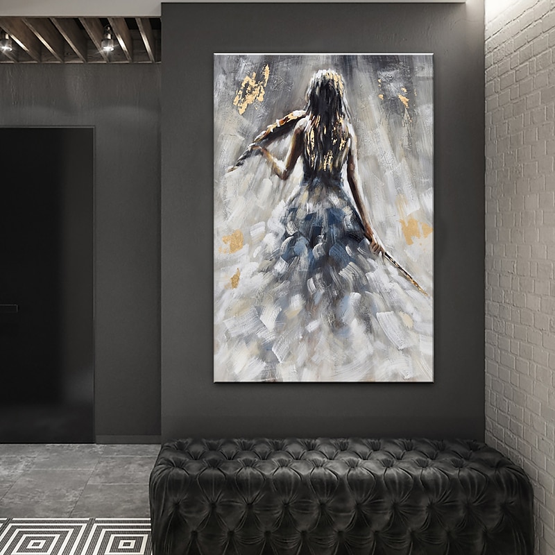 More information about Oil Painting 100% Handmade Hand Painted Wall Art On Canvas Vertical Abstract Violin Women Back Home Decoration Decor Rolled Canvas No Frame Unstretched