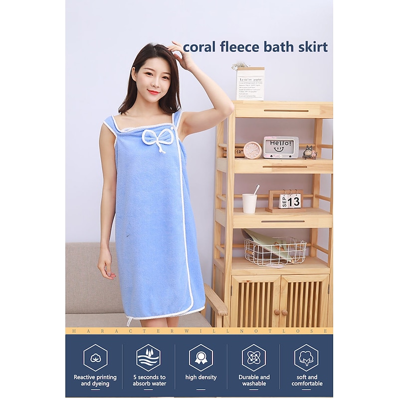 Highlights This beautiful wearable bath towels is sure to make girls feel special 1. 【Wearable & Durable for Use】Large Size: Large Size: 135cm x 80cm (53" x 31.5" ), Suit For 80-200lb women and girls.. Wearable design solves the awkwardness of traditional bath towels.This Beach Towels is Soft, Quick dry, Absorbent. It Can Dries Your Body Up And Wring The Water Out. 2. 【Material】Coral fleece fabric is soft and zero sensitivity, provide the smooth touch feeling and can absorb extra water from your body after shower. 3. 【Various Styles】These Wearable Bath Towels Are Available In A Range Of Lovely Patterns And Accept Custom Designs, Making Your Feet Look Very Sexy And Eye-Catching. 4. 【Fashion and Sexy】This fashion sexy all-match sling dress can be used as home shower bath towel, swimming pool bikini cover-up, beach sunscreen skirt, sauna spa fitness lounge dress, etc.