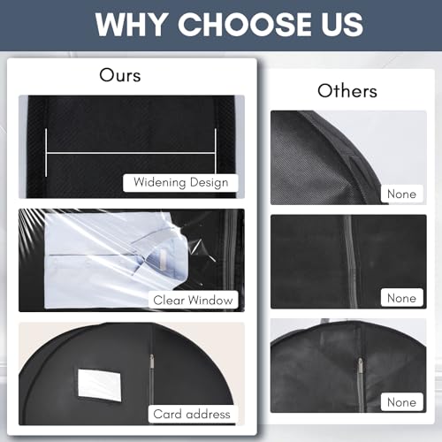 43'' Garment bag with Heavy Duty Shoe Storage travel bag, 3 Zipper Pocket Breathable Suit garment Cover for Dresses, Coats, Tuxedos, Travel Essential, Black, 1 Pack 5