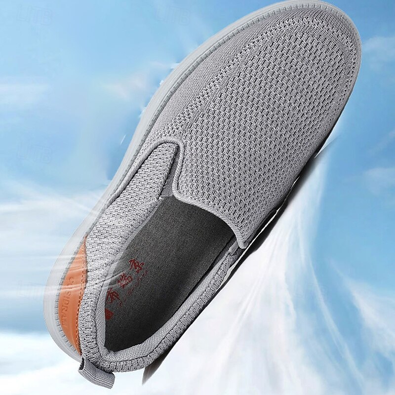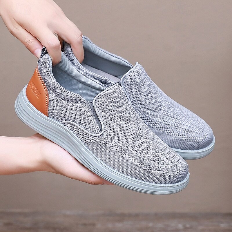 HOT ! Men's Navy Knit Slip-On Sneakers – Breathable Stretch Fabric with Contrast Heel, Ultra-Light Comfort for Walking, Travel and Daily Wear