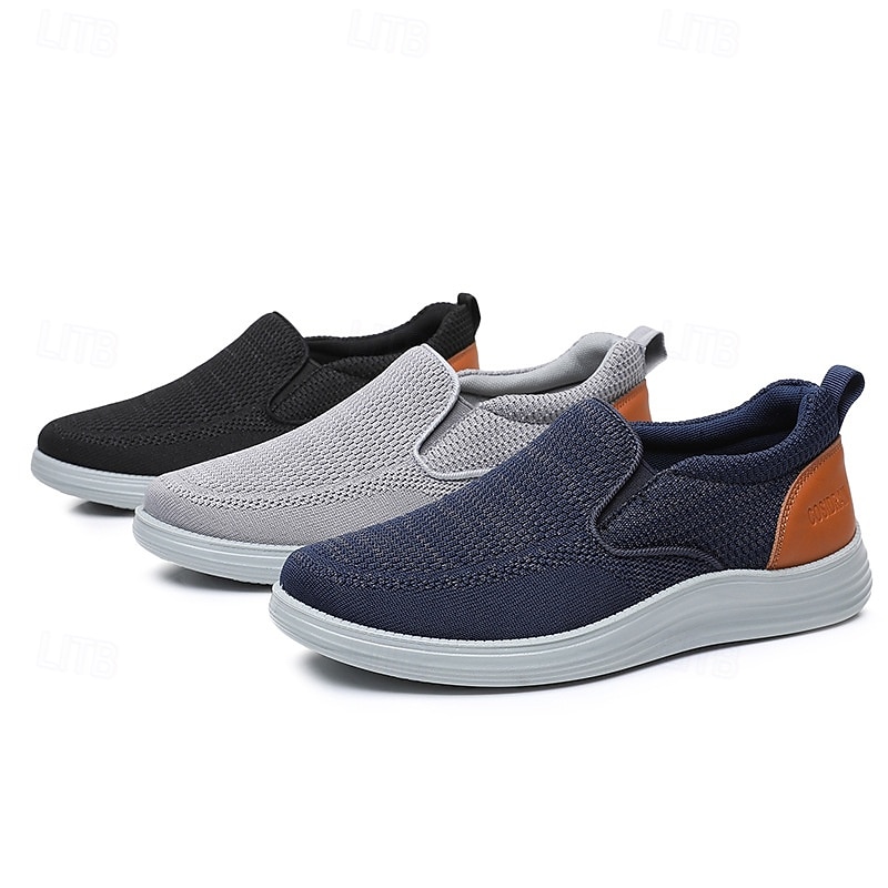 More information about Men's Navy Knit Slip-On Sneakers – Breathable Stretch Fabric with Contrast Heel, Ultra-Light Comfort for Walking, Travel and Daily Wear