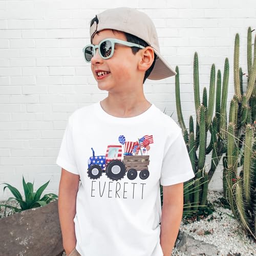 HOT ! Personalized 4th Of July Tractor Shirt For Kids - Custom Name Monogram Farm Tractor American Flag Outfit - Toddler & Youth Boho Natural Kids Shirts